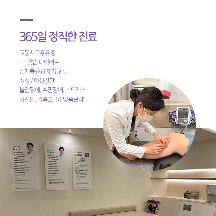 침산동 골다공증한의원에서는 골다공증 뿐 아니라 신체통증과 추나요법, 체형교정, 교통사고후유증, 1:1 맞춤 다이어트, 어린이 성장, 여성질환, 불안장애, 수면장애, 스트레스, 공진단, 경옥고, 1:1 맞춤보약 등 진료합니다. 매일 밤 8시까지 진료하며, 주말과 공휴일에는 3시까지 진료하고 있으므로 참고하셔서 이용에 불편없으시길 바랍니다.