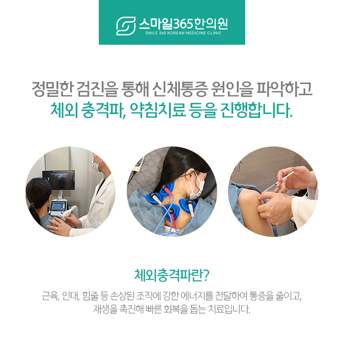 이와 함께 많이 활용되는 고성동 추나치료한의원 체외충격파는 통증이 발생한 부위에 외부에서 고에너지 음파를 가해 조직 재생과 통증 완화를 돕는 방법입니다. 충격파를 통해 병변 부위의 혈류를 개선하고 조직을 활성화시켜 통증 감소에 도움이 됩니다. 환자분 체질에 맞는 약재를 구성해 조제되는 한약은 어혈을 제거하고 기혈순환을 촉진해 손상된 디스크 회복을 돕습니다. 그리고 건강한 혈액을 생성해 면역력 향상과 전반적인 건강증진을 돕습니다.
